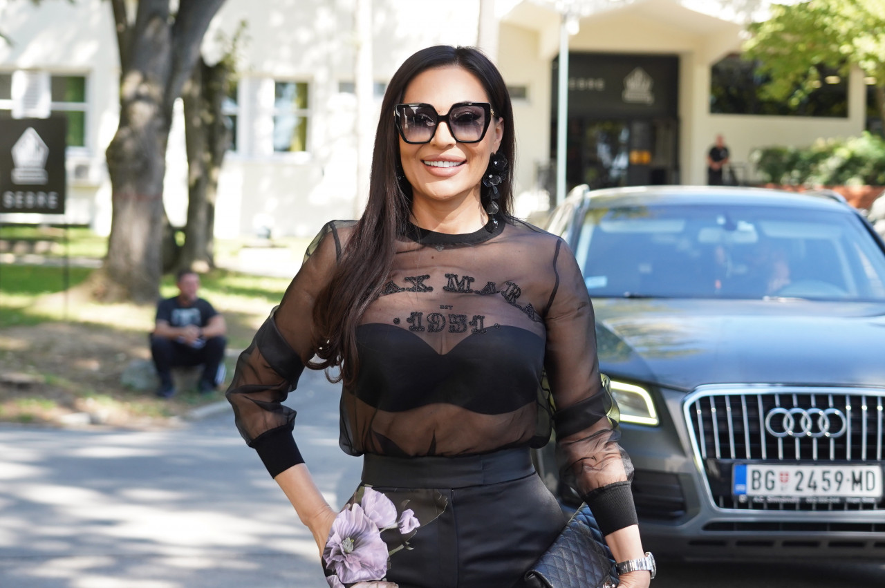 Цеца је стајлинг употпунила наочарима за сунце, а осмех није скидала са лица.