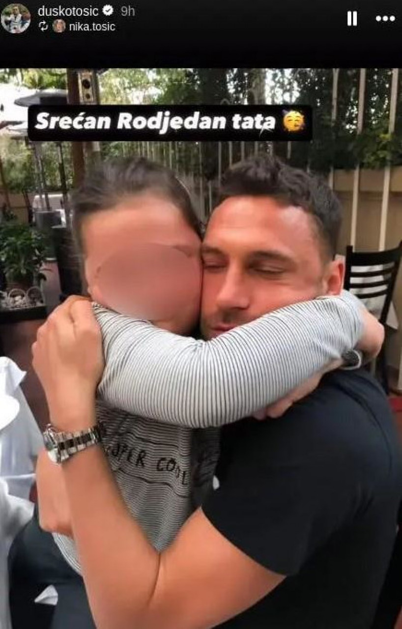 Међутим, Душко је за сада поделио само честитку његове наследнице Нике Тошић. Ника је поделила њихову заједничку фотографију на којој се види како се грле и у опису му је честитала рођендан.