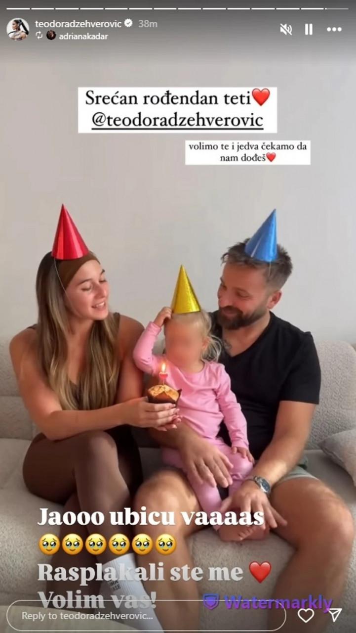 Наиме, Теодорин брат и његова супруга Адријана заједно са својом ћеркицом честитали су јој рођендан на симпатичан начин.
