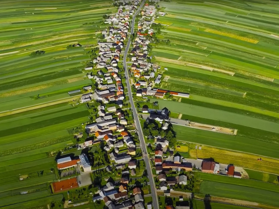 Наиме, готово шест хиљада становника живи уздуж једне једине улице дугачке девет километара! То "линеарно село" постало је препознатљиво по снимкама из ваздуха које су радозналима приказале шарени мозаик пољопривредних поља која окружују главну саобраћајницу.