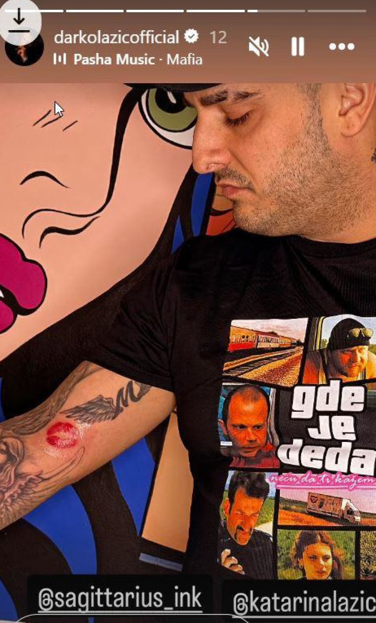 Фолкер Дарко Лазић има много тетоважа на телу, а сад је одлучио да одради још једну, али и да поведе супругу Каћу, не би ли и она одрадила коју. Дарко је показао да сада има цртеж усана на руци.