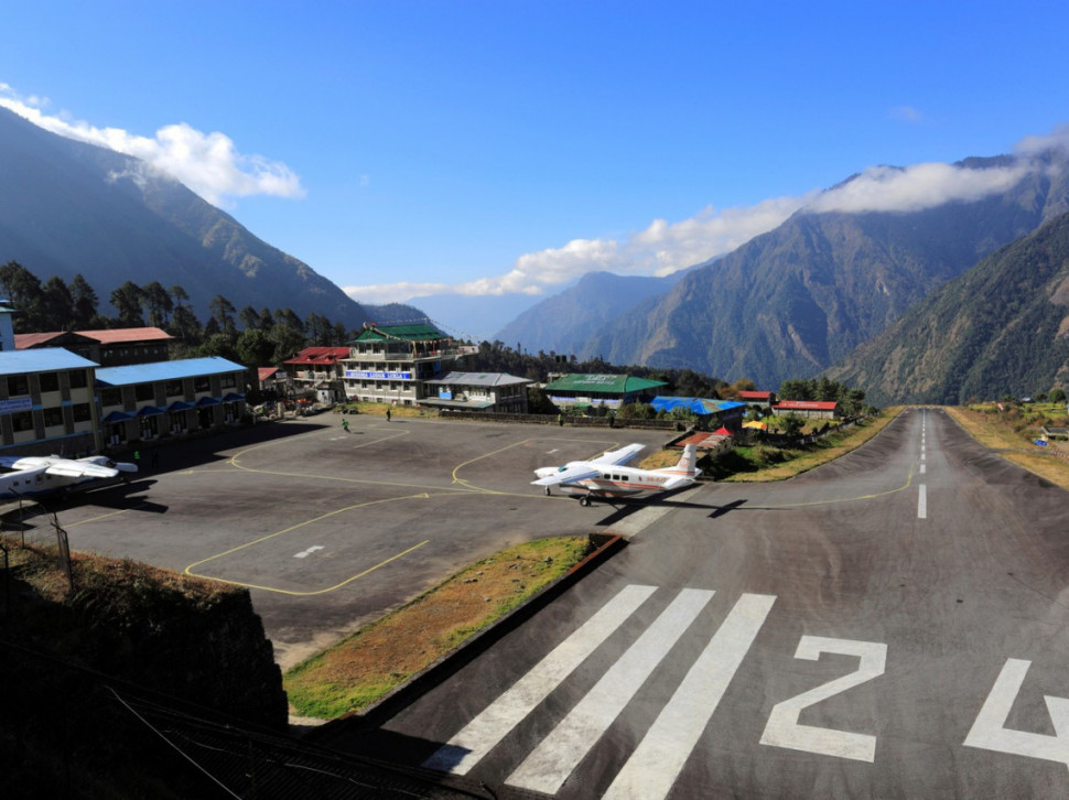 Аеродром Тензинг-Хилари се налази у хималајским планинама у Непалу и познат је као најопаснији аеродром на свету. Кратка писта која се налази између два планинска врха дуга је само 457 метара и захтева да пилоти буду посебно обучени за слетање и полетање.