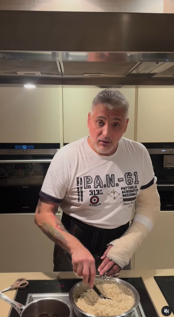 - Мислио си да нећу моћи да кувам због руке, а? Слушај рецепт: маслиново уље и благо рижу пржиш, у једном тренутку ћемо налити са бујоном. У вок иду плодови мора са маслиновим уљем и луком и онда ће се све то сјединити у један фантастичан рижото који нико не прави тако добро као ја, зато што вас ја највише волим - рекао је Чеда пријатељу и навео имена људи који ће им се придружити на вечери.