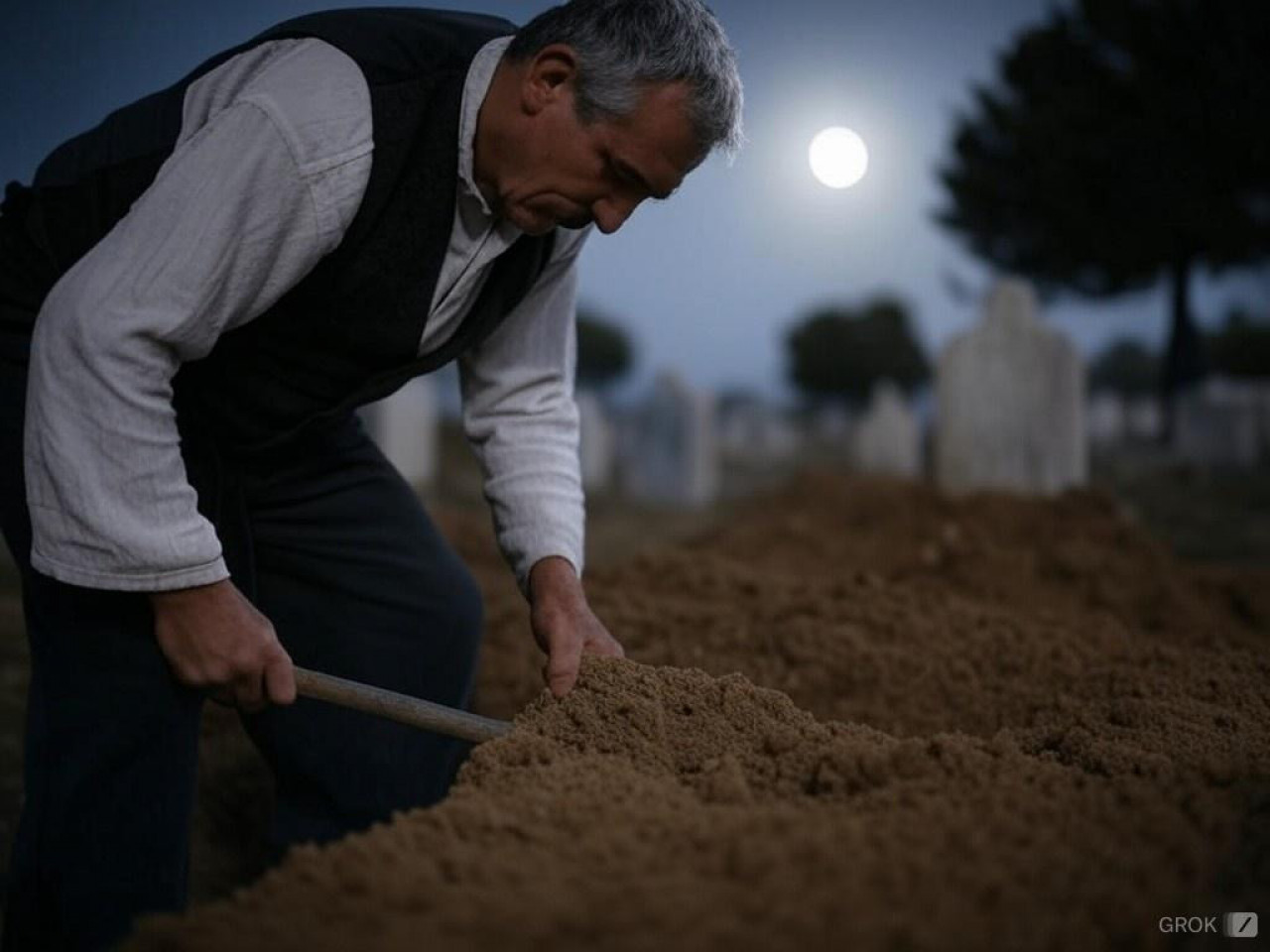 Накуповао симите, пењерлије из фурунџиница. Поређао по гробу. И, укочено, чисто очајно погледом моли попу да што пре дође до њега, препоје, те како би могао да иде, побегне, не слуша око себе више тај плач, цвилење.