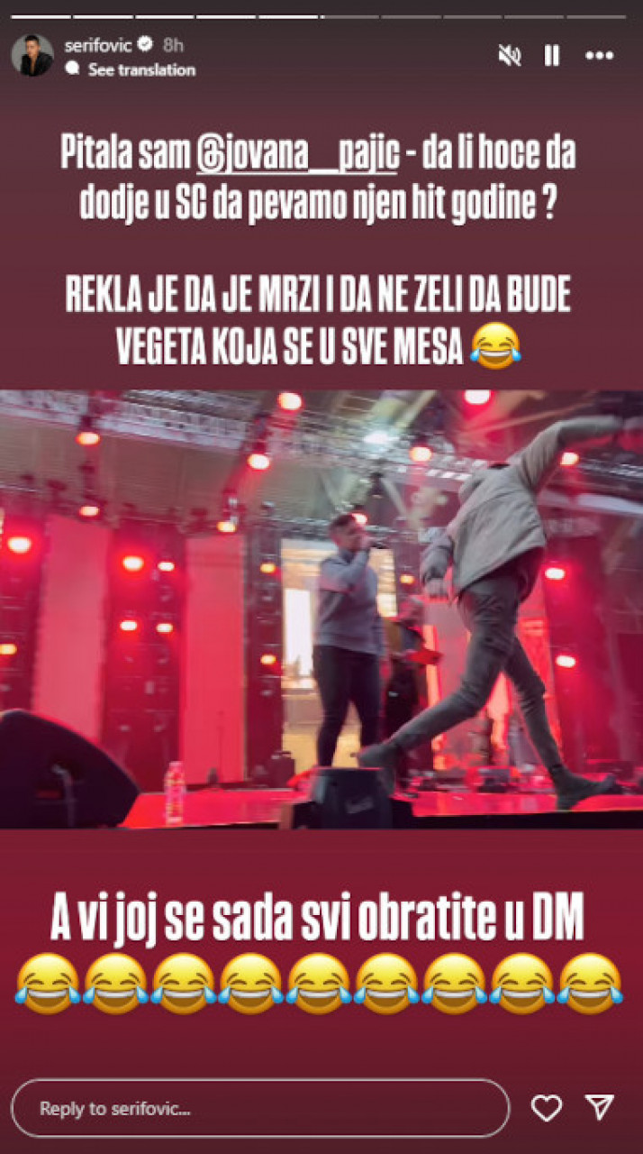 - Рекла је да не жели да буде вегета која се у све меша, а ви јој се сада обратите у ДМ - написала је Марија у објави, а убрзо је уследио Јованин одговор.