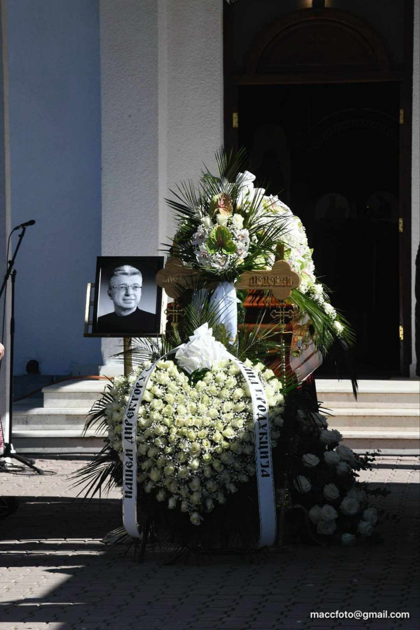 Испред ковчега налази се венац од белих ружа у облику срца, који су донели запослени "Гранд продукције".