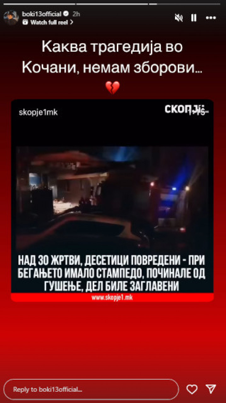 - За сад знам да није у животној опасности, има опеклине на лицу и руци те је на респиратору у Клиничком центру у Скопљу. Још не знам гђе је и како су Андреј и остали чланови бенда. Немам снаге за више ријечи", изјавила је раније уплакана сестра повређеног певача, Јадранка Николовска, у тренутку док се још није знало шта је са Горгиески..