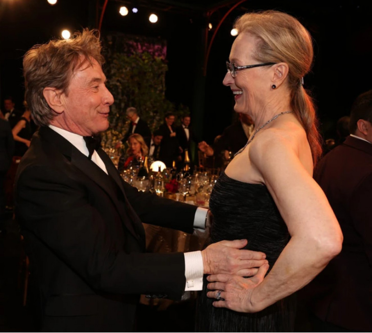 Разговори о Мерил Стрип и Мартину Шорту су се интензивирали када су се појавиле заједно на церемонији доделе награда Златни глобус - срећно су позирали за фотографе и седели за истим столом. Тада је агент комичара рекао да нема тајни - глумци су само добри пријатељи.