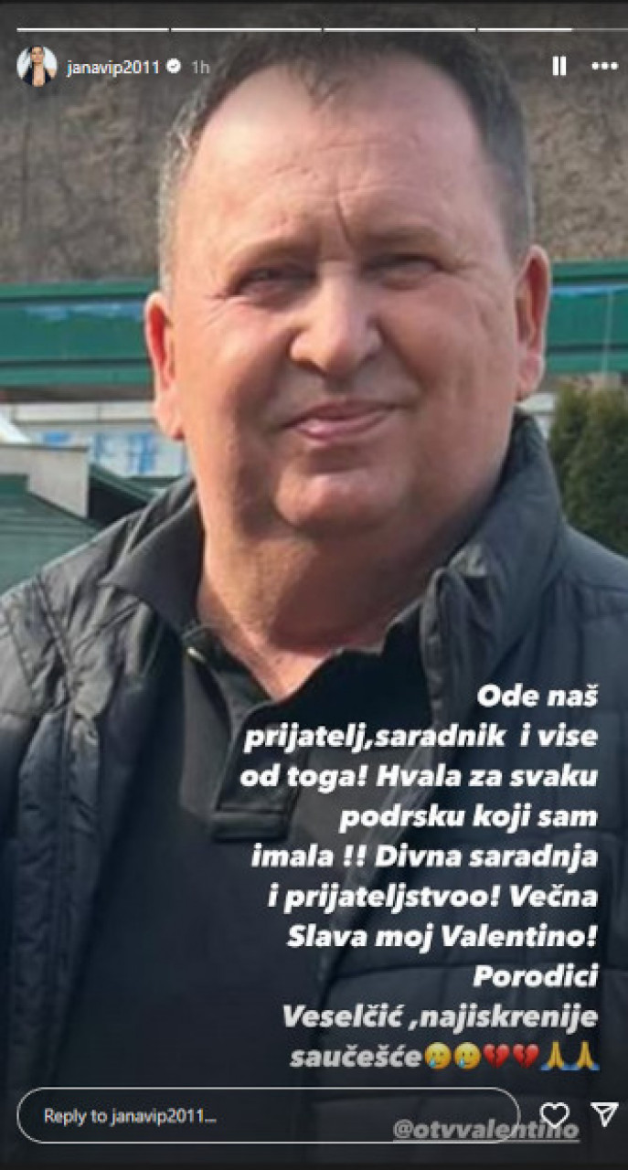 На друштвеним мрежама, Јана се опростила од њега емотивним постом, уз фотографију и дирљиву поруку:
