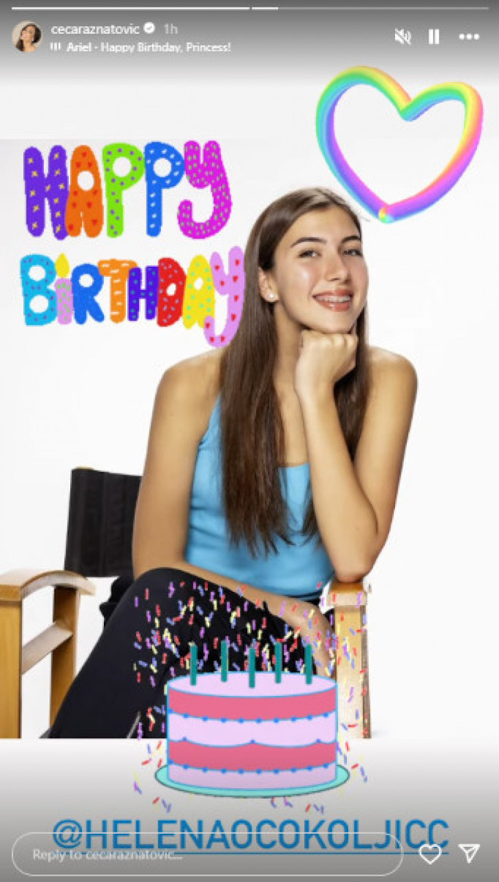 Певачица је на свом Инстаграм профилу објавила Хеленину фотографију уз стикер рођенданске торте.