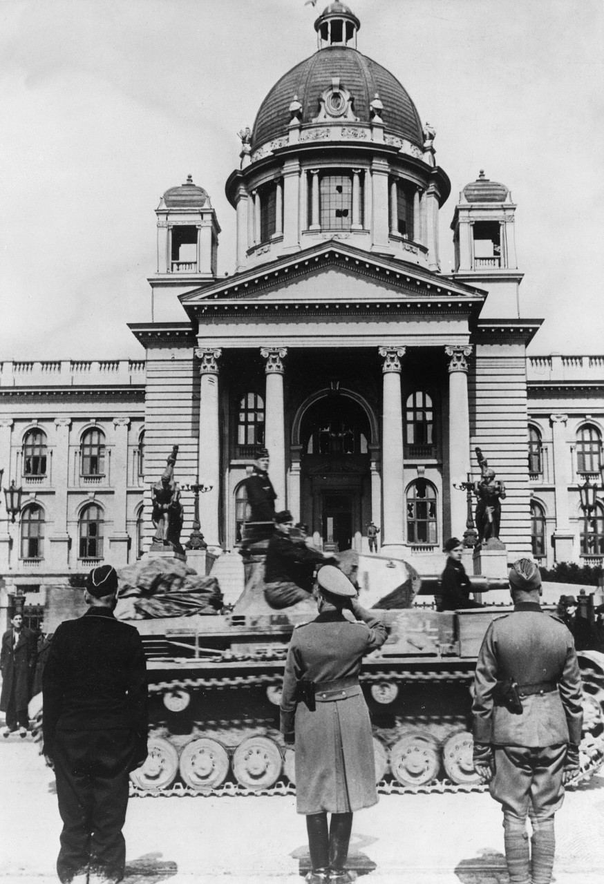 У згради некадашњег Ратничког дома, који се налази на угловима Улице Браће Југовић, Француске, Симине и Улице Емилијана Јосимовића, током немачке окупације Београда, било је смештено седиште Гестапоа, односно средиште Оперативне групе Полиције безбедности и службе безбедности (нем. Einsatzgruppe Sicherheitspolizei und Sicherheitsdienst, скраћено Einsatzgruppe Sipo und SD), на чијем је челу био СС-пуковник Вилхем Фукс (нем. Wılhem Fuchs). Оперативна група је имала шест одсека и директно је била подређена Главној управи за безбедност Рајха у Берлину ( скр. РСХА). У њеној служби је било око сто официра, углавном из СС јединица, службеника, тумача и других специјалиста. Главна функција је била сузбијање политичких и идеолошких противника Трећег Рајха, пре свега Јевреја и Рома.