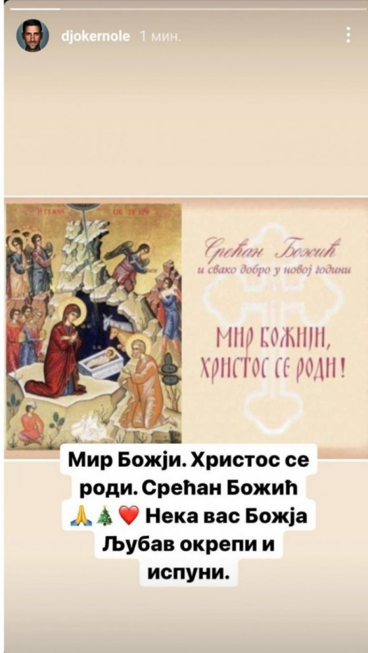 Поред честитке за Божић коју је Новак упутио, најбољи тенисер света се захвалио и на великој подршци која му ових тешких дана стиже са свих страна.