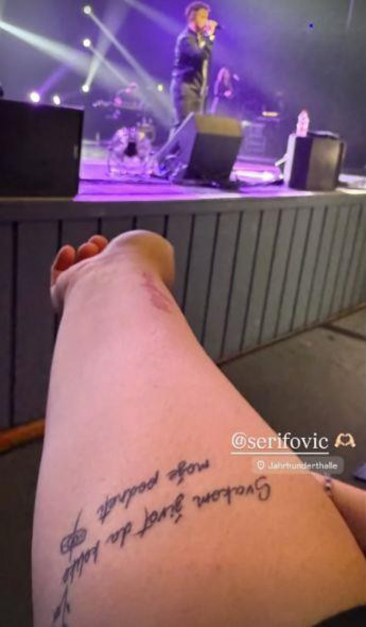 Наиме, док је Марија певала, жена под именом Адела је испружила руку и сликала тетоважу на којој је стих њене песме "Паметна и луда".