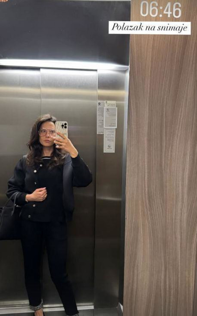 Овога пута, глумица је све изненадила када се огласила из лифта у цик зоре и то без трунке шминке. На фотографији је поносно написала праву сатницу и открила да се упутила на снимање.