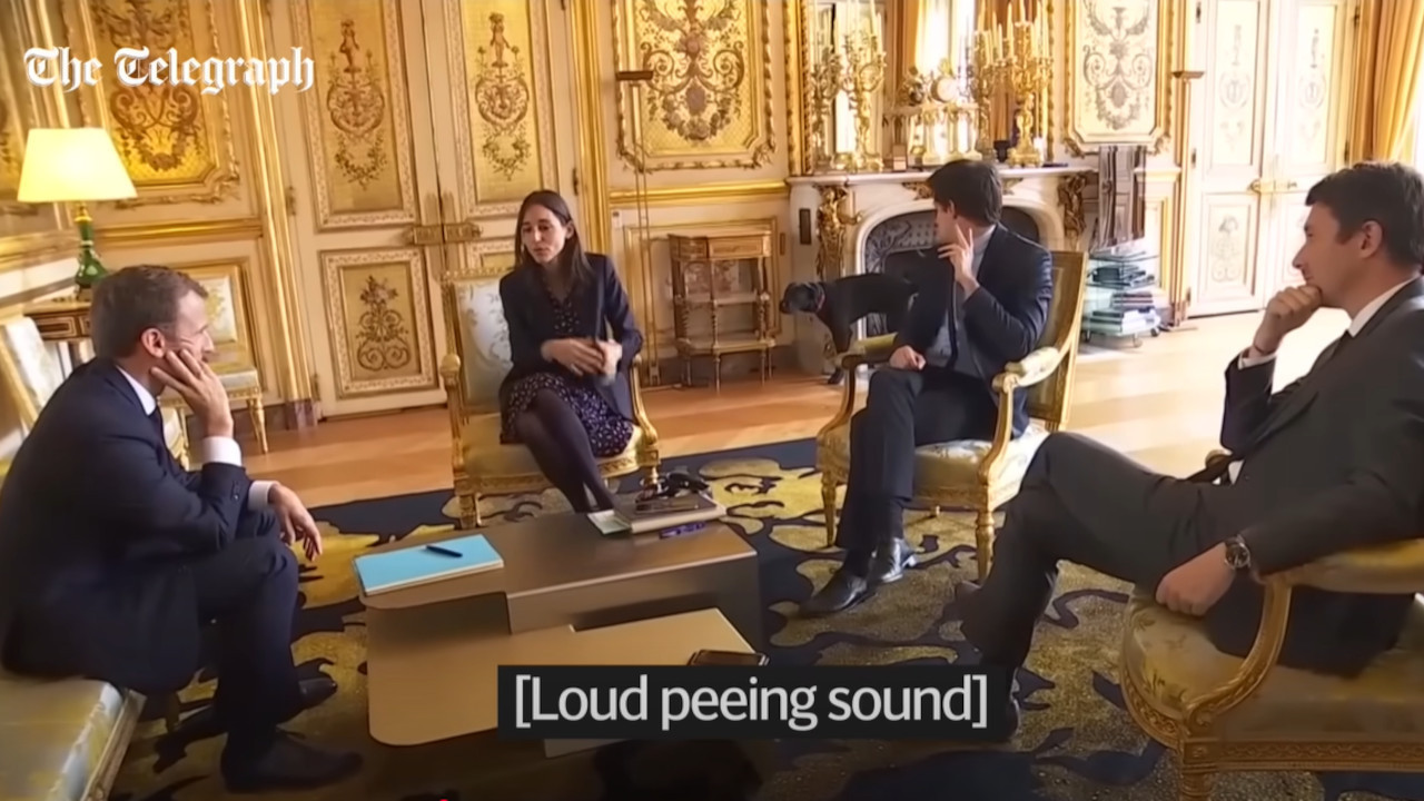 Мешанац лабрадора је решио да се олакша усред састанка - уринирао је у камин Јелисејске палате. Камера је снимала Макрона и сараднике, а у позадини Немо је безбрижно "завршавао своје обавезе".