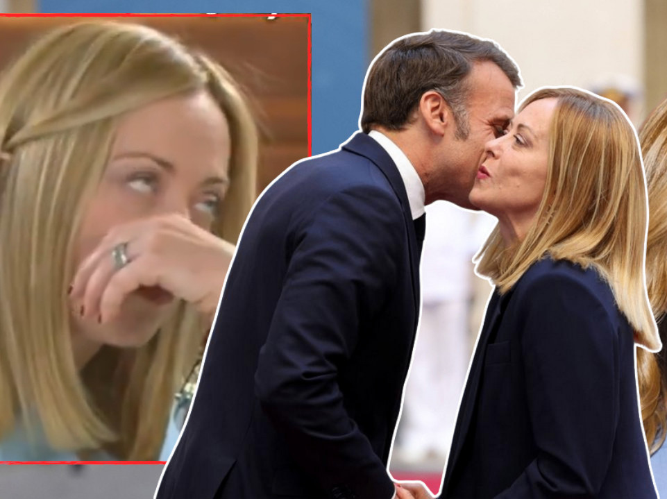 Макрон је пришао Мелонијевој, руковао се са њом и пољубио је, на шта се она иронично осмехнула и касније, када је француски председник отишао, чини се да је заколутала очима.