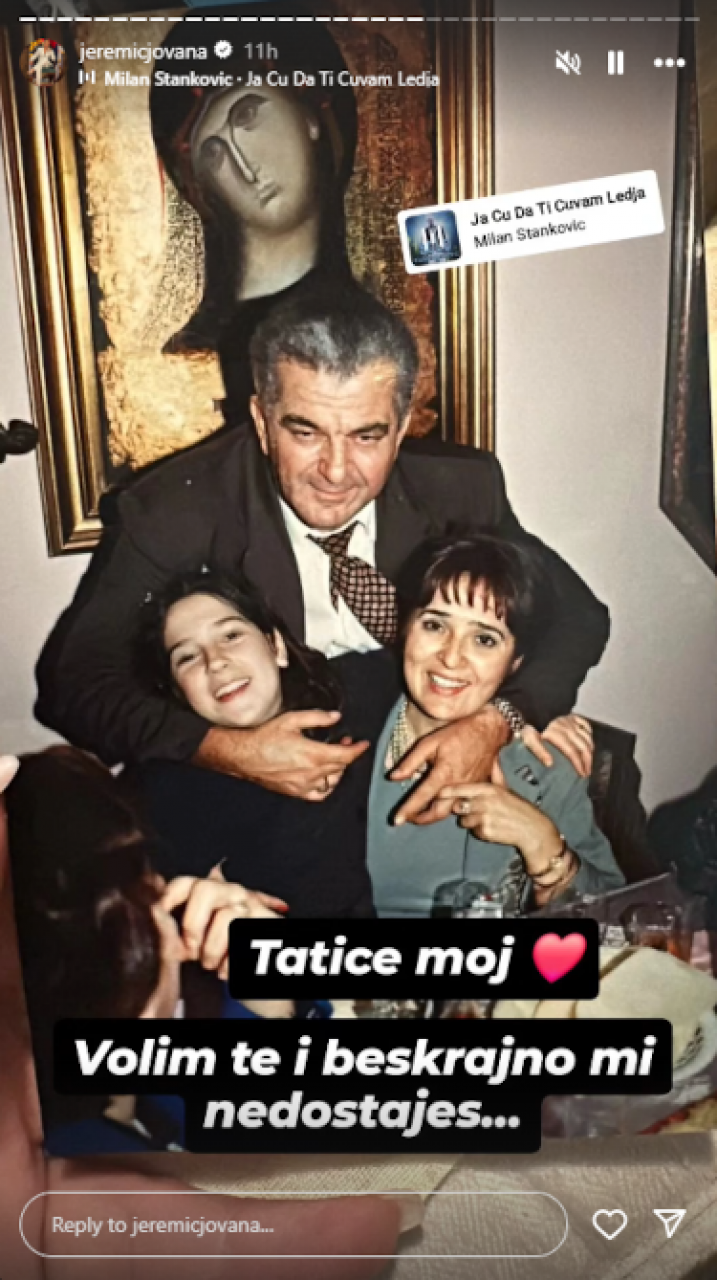 - Татице мој, волим те и бескрајно ми недостајеш - стајало је у објави, док је у позадини свирала нумера од Милана Станковића "Ја ћу да ти чувам леђа".