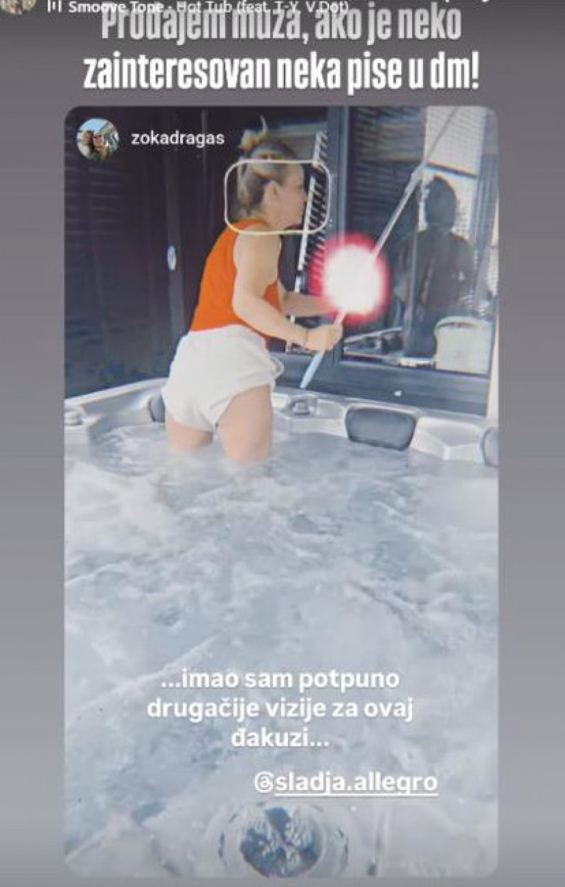 Он је на свом Инстаграм профилу поделио видео на ком Слађа риба њихов џакузи док је на себи имала шортс и мајицу, а како је написао, имао је "потпуно другачију визију" када га је купио.