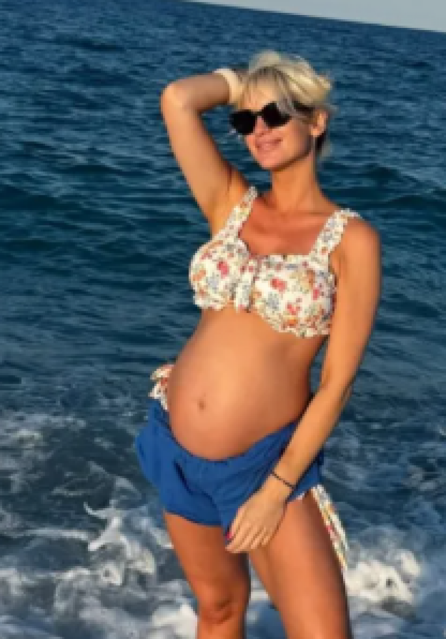 Наиме, она је позирала у плићаку и показала труднички стомак, али и осмех који не скида са лица.