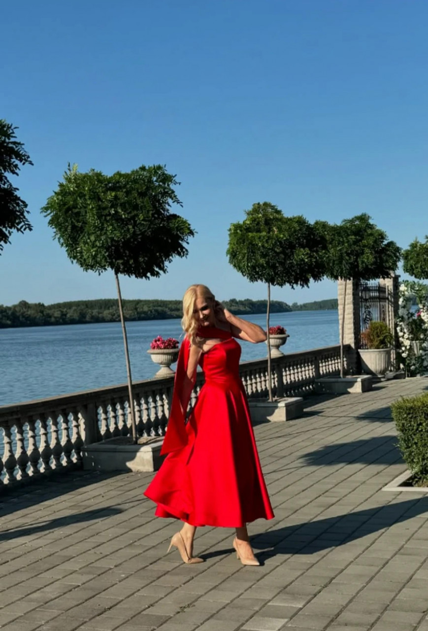 Водитељка је одабрала црвену тоалету, која јој је одлично пристајала.