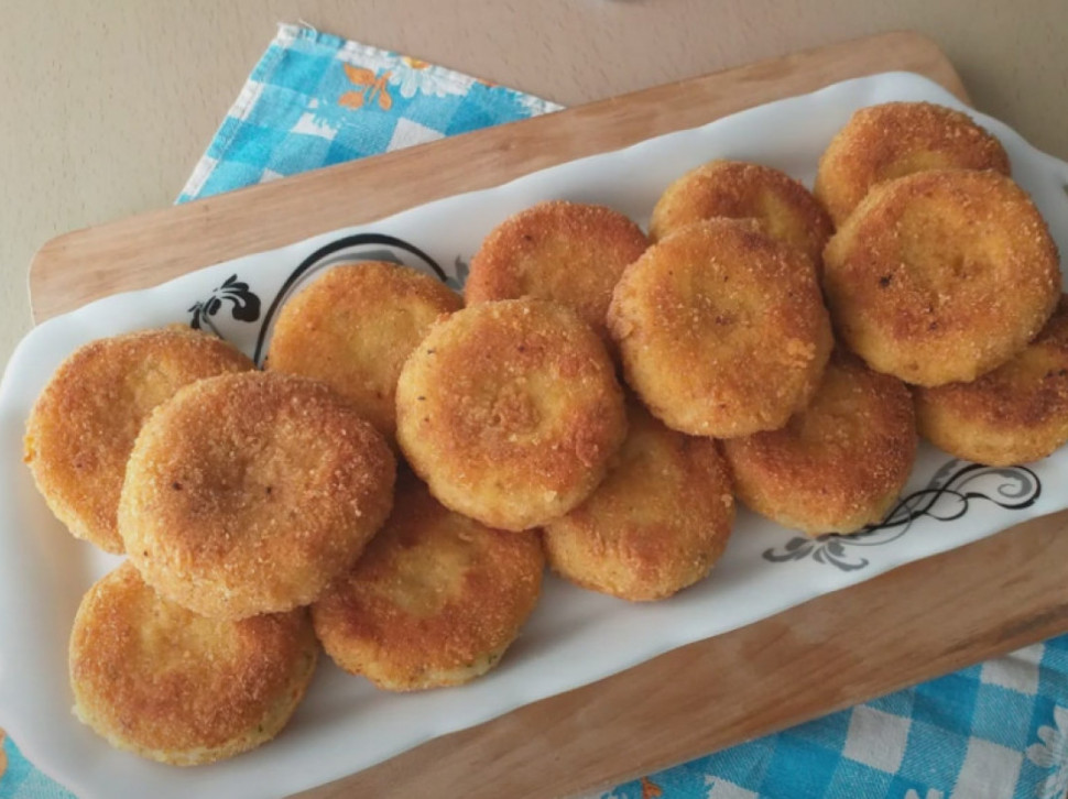 Црни лук ољуштите и ситно исецкајте па ставите у чинију. Додајте хладни пире кромпир и јаје па зачините. Смесу добро промешајте. Затим додајте пармезан и густин па све сједините. Оставите у фрижидеру 45 минута. Рукама обликујте пљескавице па их пржите на путеру 3 до 4 минута са сваке стране. Оставите на убрусу да се оцеде од вишка масноће.