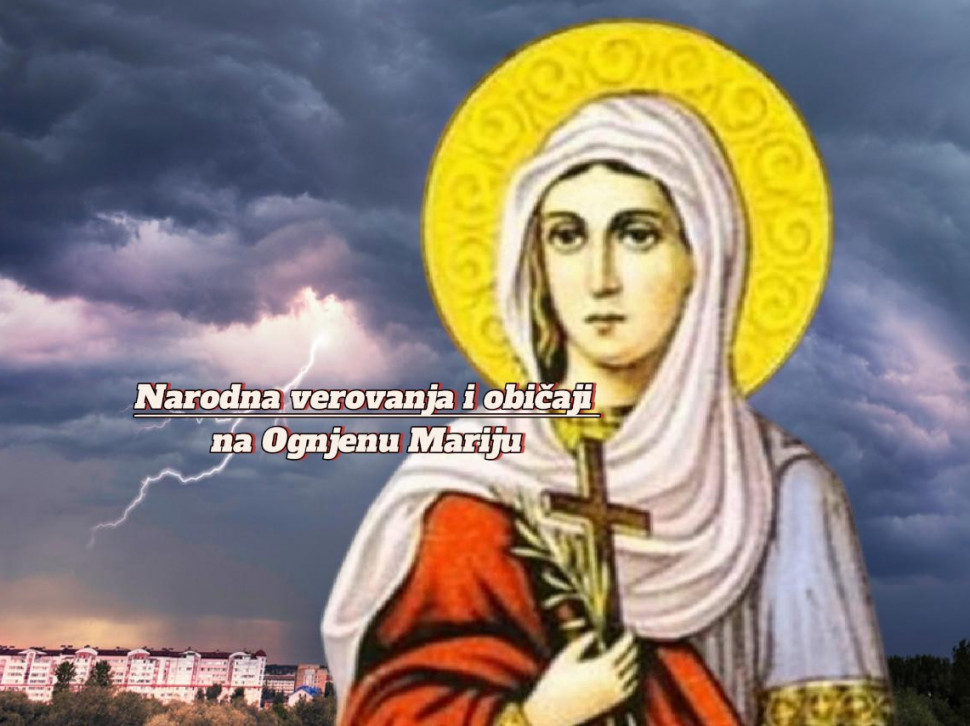 Огњена Марија, света мученица Марина, била је родом из Антихије. Крстила се у 12. години и због вере у Исуса Христа страдала је у време цара Диоклецијана. Према народном веровању, Света Марина пали и кажњава огњем и као Свети Илија који кажњава громом она спада у "огњевите" свеце. Обичај је да се на овај празник, када због велике врућине "гори небо и земља", не раде никакви послови.
