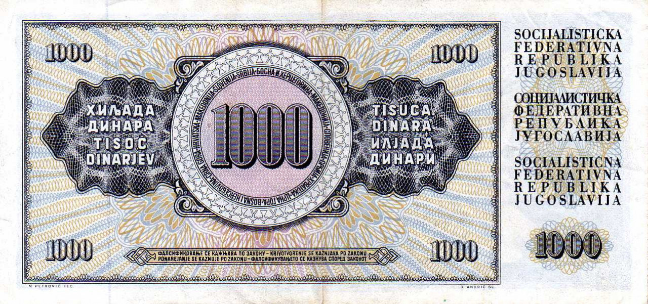 У тренутку издавања вредела је око 55 америчких долара или 121 западнонемачку марку, а повучена је из оптицаја 1989. године. До тада је, услед инфлације, њена вредност пала на свега 10 пара конвертибилног динара — недовољно чак и за кутију шибица.