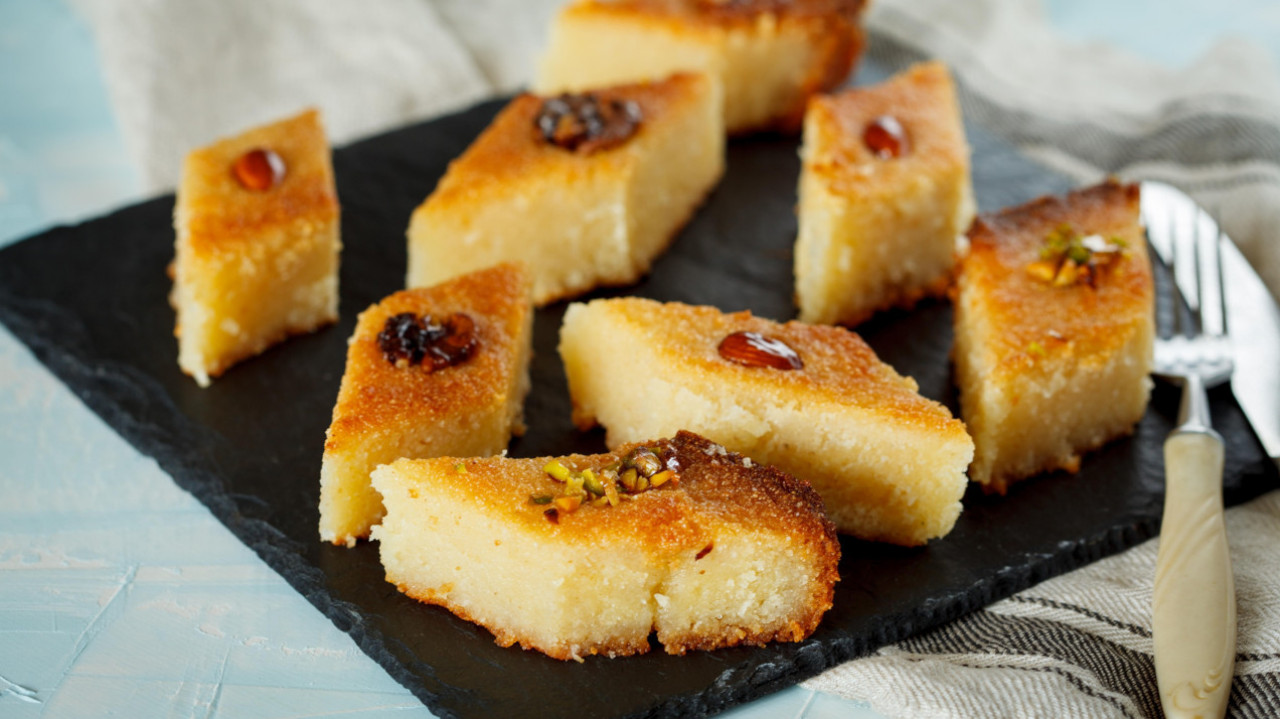 Права посластица за овај период године је египатски колач који је препун меда и бадема. Врло брзо и лако се спрема.