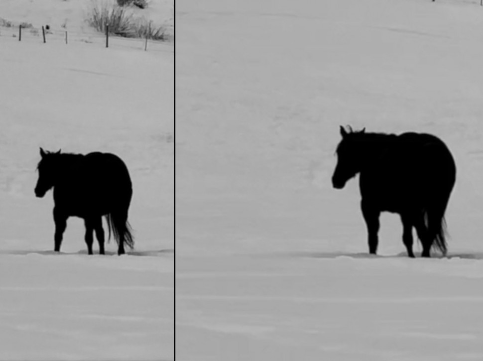 Снимка која приказује коња како хода по снегом натопљеном пољу успела је да "залуди" многе. Може се видети како коњ полако хода док пажљиво пробија бели покривач који прекрива тло, али није нимало лако одредити у којем смеру се креће.