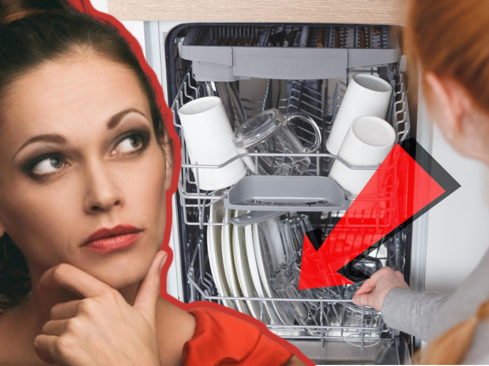 Постављање великих шерпи и чинија лицем према доле такође је погрешно, јер би они требало да буду постављени бочно. То је посебно важно за старије машине које немају горњи крак за прскање воде, пише Huffington Post.