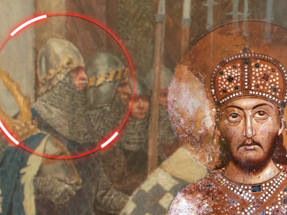 Само је барјактар, Швеђанин, био виши од цара, а барјак који је носио и који се чува у Хиландару је био тежак 40 килограма, носио га је у једној руци, док је у другој држао мач.