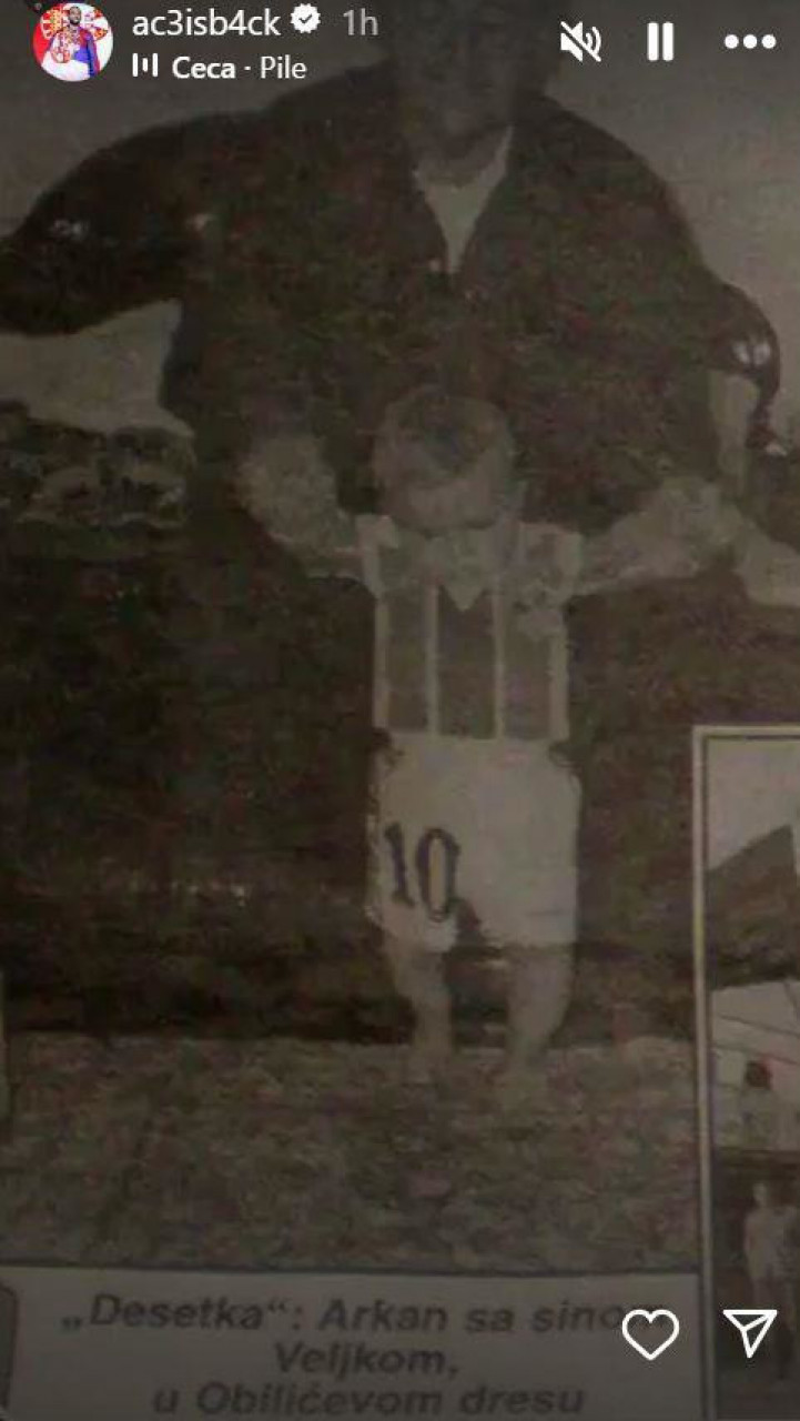 Ражнатовић с времена на време евоцира успомене и објави фотографију са оцем Жељком Ражнатовићем Арканом, по којем је његов први син добио име. Сада је разнежио пратиоце исечком из новима где га Аркан поносно шета у дресу свог тадашњег фудбалског клуба Обилић.