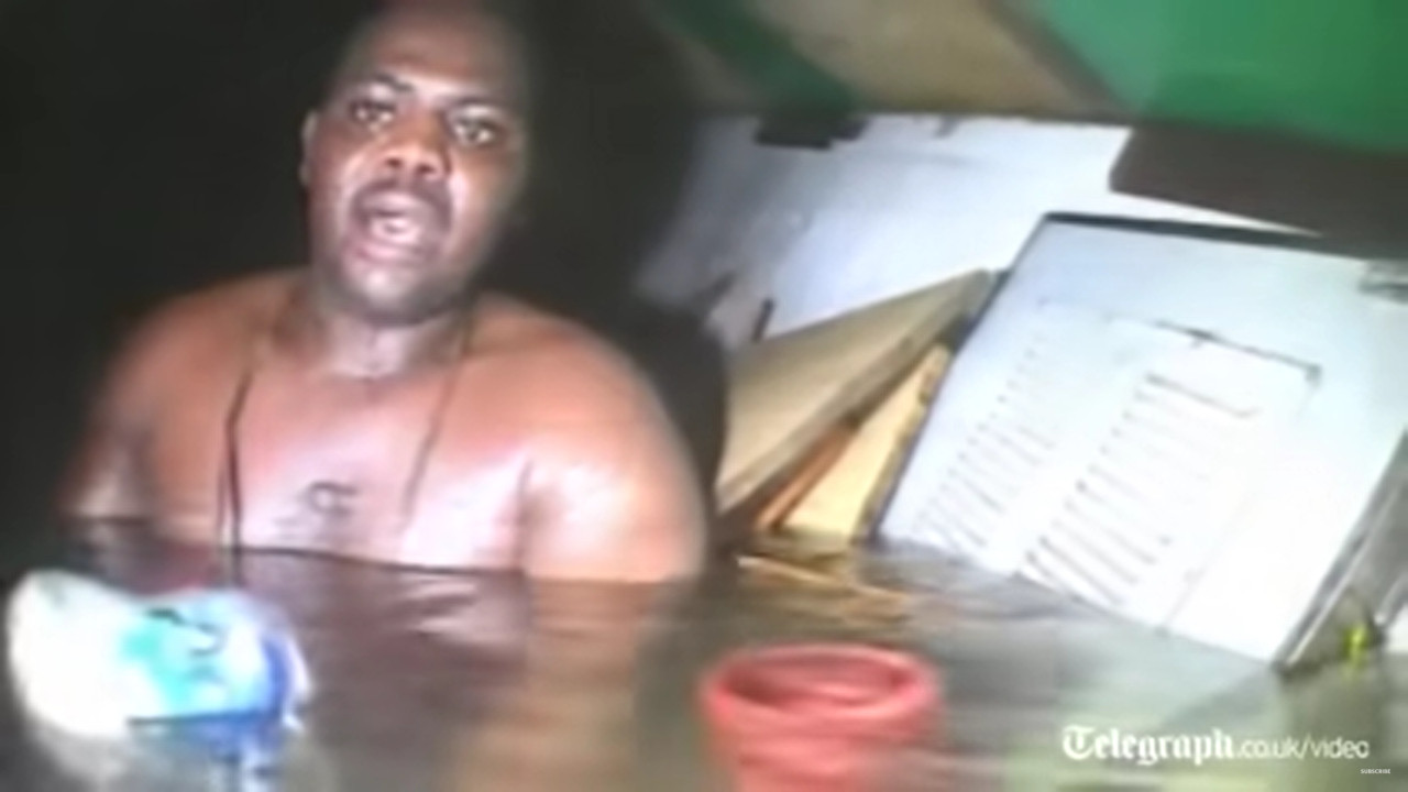 Харисон Окене је седео на тоалету, сигурно најгорем месту за боравак у време катастрофе, када је неочекивани талас ударио у брод тегљач на којем је радио и преврнуо га наглавачке. Тада је био на поду, а тоалет је био изнад њега.