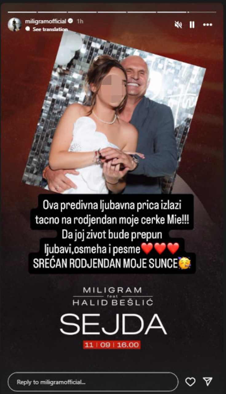 - Ова предивна љубавна прича излази тачно на рођендан моје ћерке Мие! Да јој живот буде препун љубави, узспеха и песме! Срећан рођендан моје Сунце - написао је он уз фотографију њега и Мие.