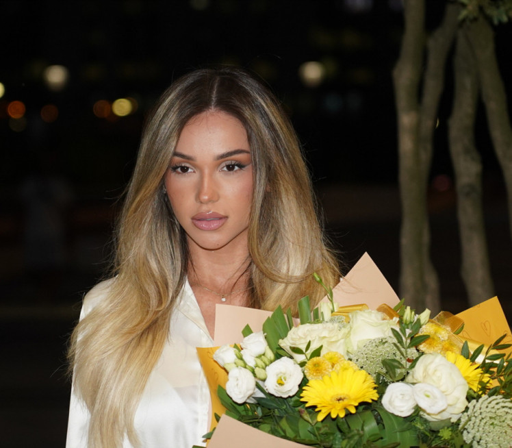 Лепа певачица је слављеници донела букет жутог цвећа, а у руци је носила и коверу за слављеницу.