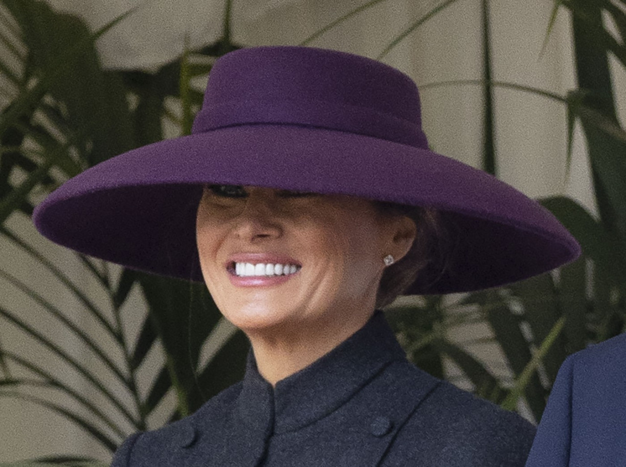 Меланија Трамп одавно је позната по упечатљивим шеширима. Још на инаугурацији њеног супруга 2017. године, бели и морнарско-плави шешир широког обода постао је вирални хит, нарочито након незгодног тренутка када је Доналд покушао да је пољуби, а шешир му дословно стао на пут.