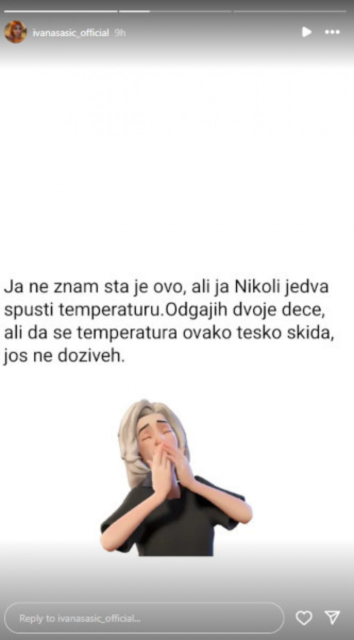 - Ја не знам шта је ово, али ја Николи једва спустих температуру, Одгајих двоје деце, али да се температура овако тешко скида, још не доживех - написала је она на мрежама.