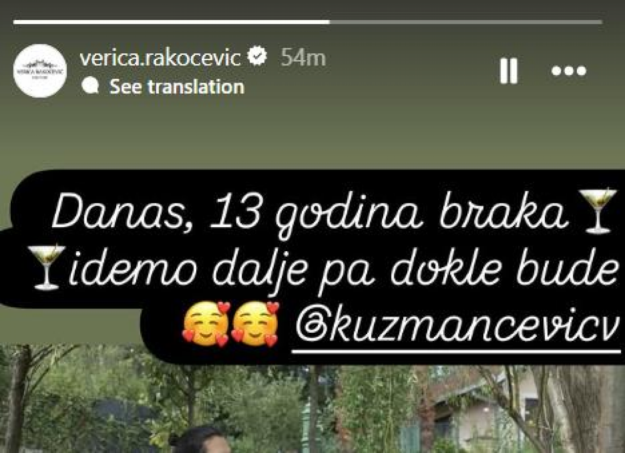 - Данас 13 година брака, идемо даље па докле буде - написала је.