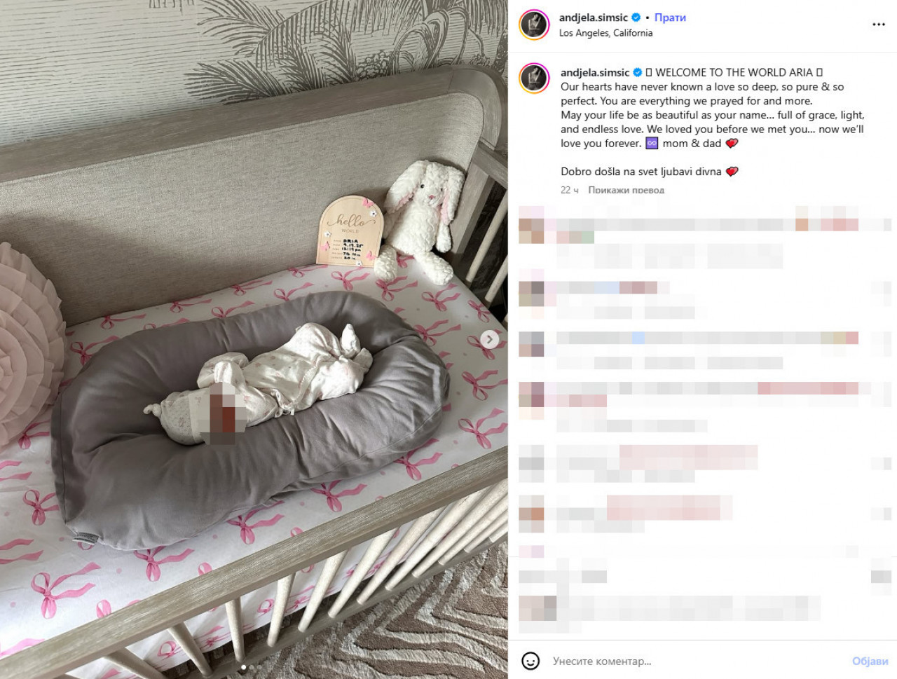 Српска тиктокерка Анђела Шимшић, која живи у Калифорнији, породила се и на свет донела ћерку.
