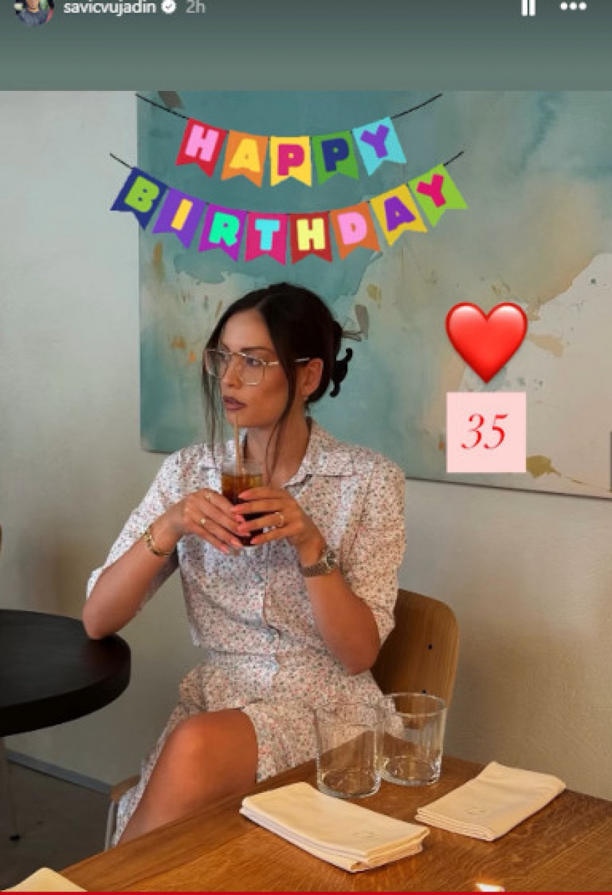 Вујадин Савић је на свом Инстаграму објавио фотографију своје супруге на којој је на енглеском било исписано: "Срећан рођендан", црвено срце и број 35.