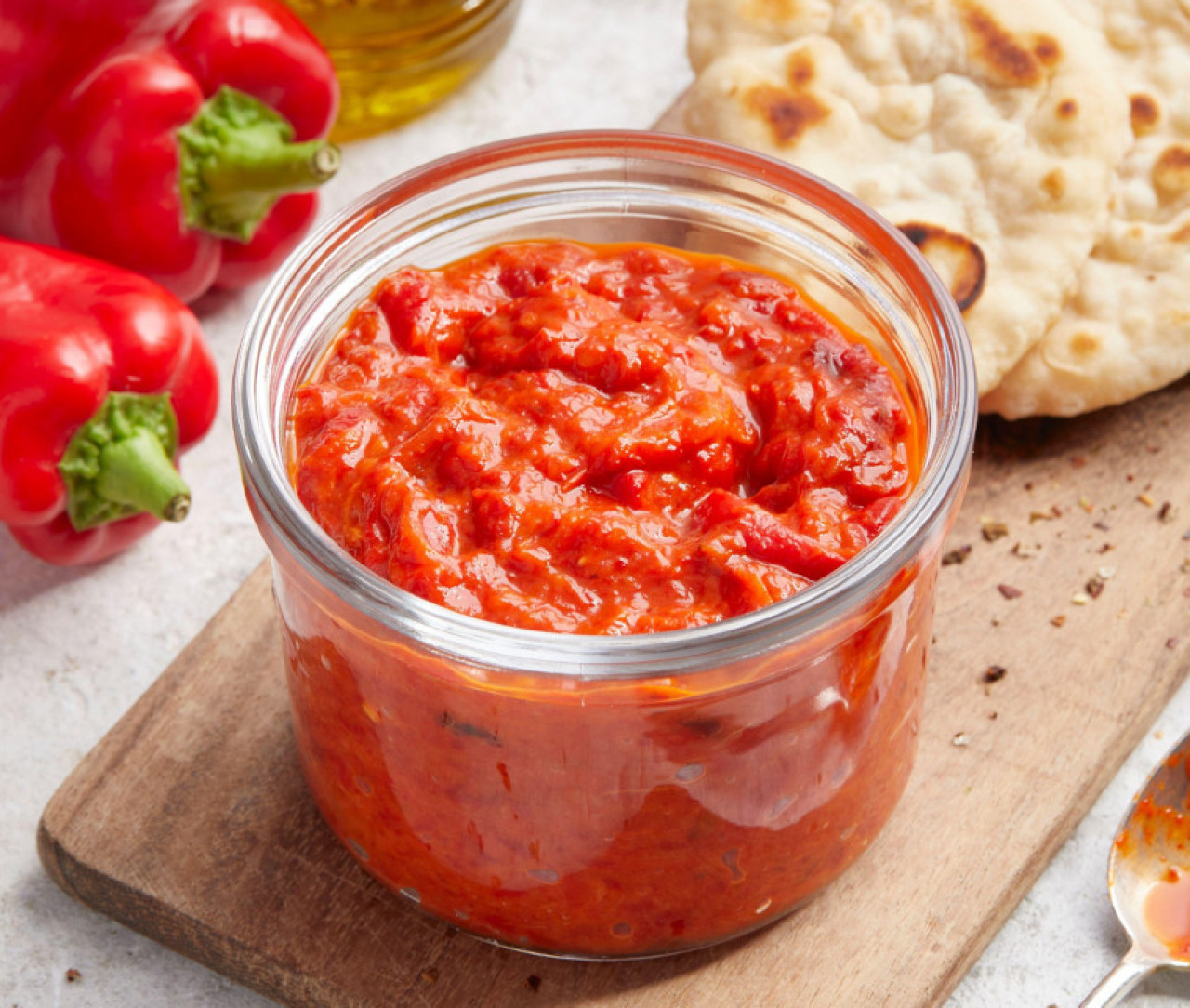 Испеците паприке у тигању са поклопцем, на средњој температури. Онда их ољуштите и ставите у блендер. Додајте уље и зачине па добро изблендајте.