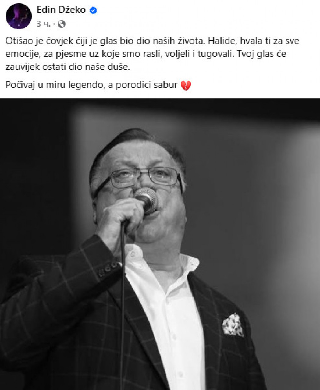 - Отишао је човек чији је глас био део наших живота. Халиде, хвала ти за све емоције, за песме уз које смо расли, волели и туговали. Твој глас ће заувек остати део наше душе.