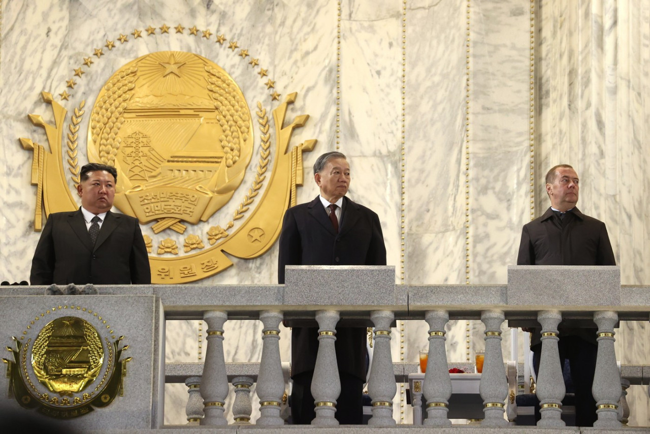 Дмитриј Медведев, заменик шефа руског Виећа безбедности и блиски савезник председника Владимира Путина, присуствовао је паради у петак заједно са кинеским премијером Ли Киангом и вијетнамским вођом То Ламом, сви су седели близу Кима, према сликама које је објавила службена Корејска средишња новинска агенција.