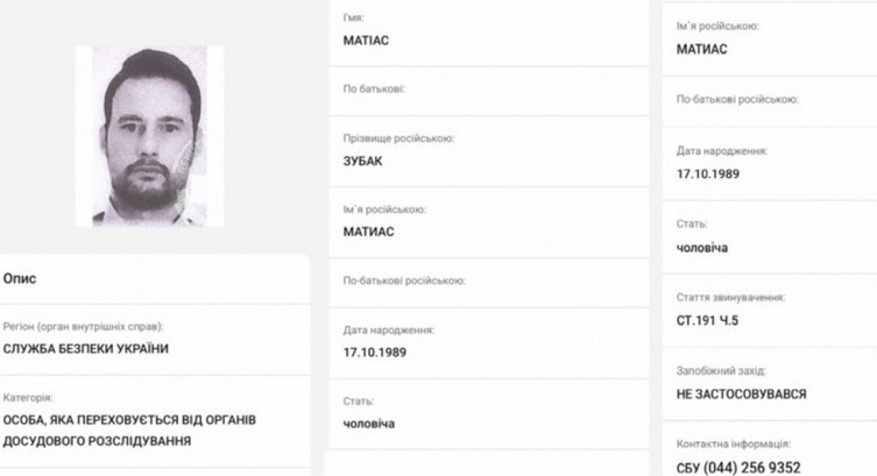 Министарство унутрашњих послова Украјине на својој је службеној веб-страници, у рубрици тражених особа, навело Матиаса Зубака као особу која се скрива од истражних тела те земље, у склопу истраге коју води Сигурносна служба Украјине. Формално, он се третира као осумњичени у одсуству. Како незванично сазнаје Журнал.инфо, ова потерница би ускоро требало да буде достављена и Интерполу, што значи и надлежним институцијама у Хрватској те Босни и Херцеговини.
