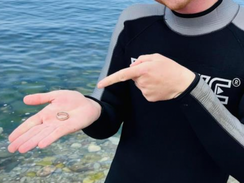 После само десет минута потраге, огласио се сигнал — и Елиас је у мору пронашао прстен.