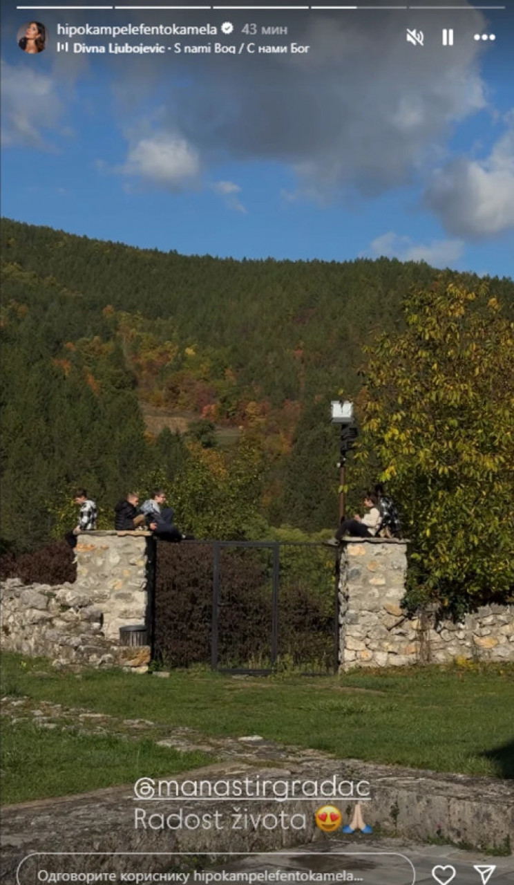 Она је ове недеље посетила манастир Градац одакле се огласила на Инстаграму.