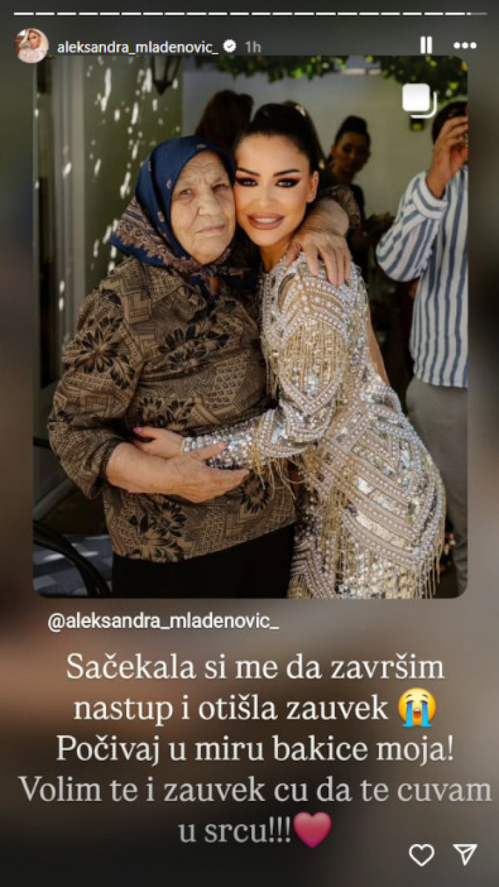 - Сачекала си ме да завршим наступ и отишла заувек. Почивај у миру, бакице моја! Волим те и заувек ћу да те чувам у срцу - написала је Младеновићева на Инстаграму, уз заједничку фотографију с баком.