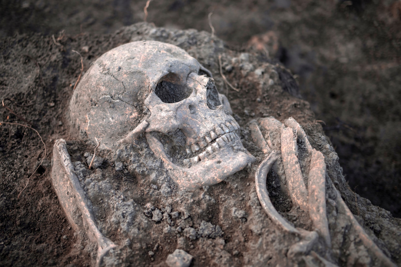 На фотографији коју је објавила полиција види се да су међу костима делови лобање и мумифицирана рука.