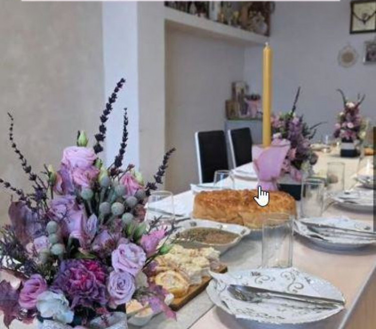 Док је певач присуствовао богослужењу, у њиховом породичном дому супруга Јелена припремала је славску трпезу. Сто је био пажљиво декорисан у нежним розе и љубичастим тоновима, са дискретним златним детаљима на салветама, док је у средини стајао аранжман свежег цвећа.