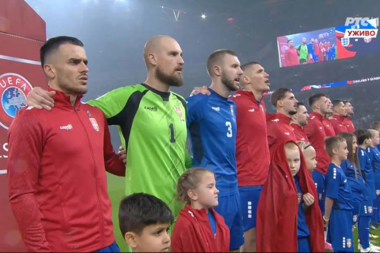 У Лондону традиционално пада киша, енглеско време је дочекало и нашу селекцију, али је то био повод да Предраг Рајковић и Страхиња Павловић покажу величину током интонирања химни.